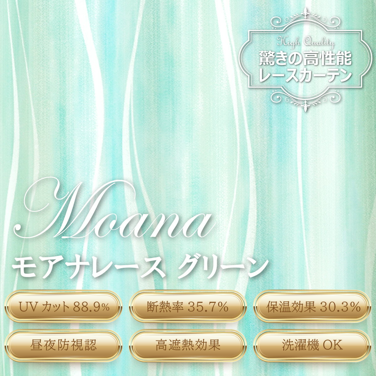 【満天カーテン プレミアム レースカーテン モアナ グリーン】 レースカーテン 昼も夜も透けない プ・・・