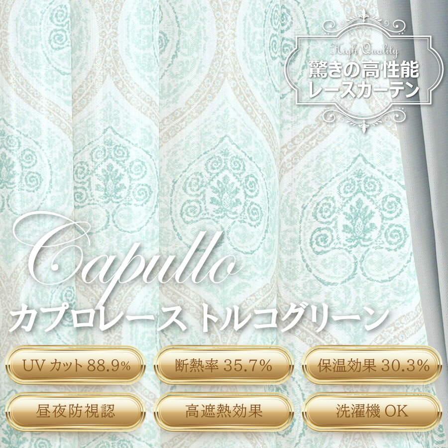 【満天カーテン プレミアム レースカーテン カプロ トルコグリーン】 レースカーテン 昼も夜も透けな・・・