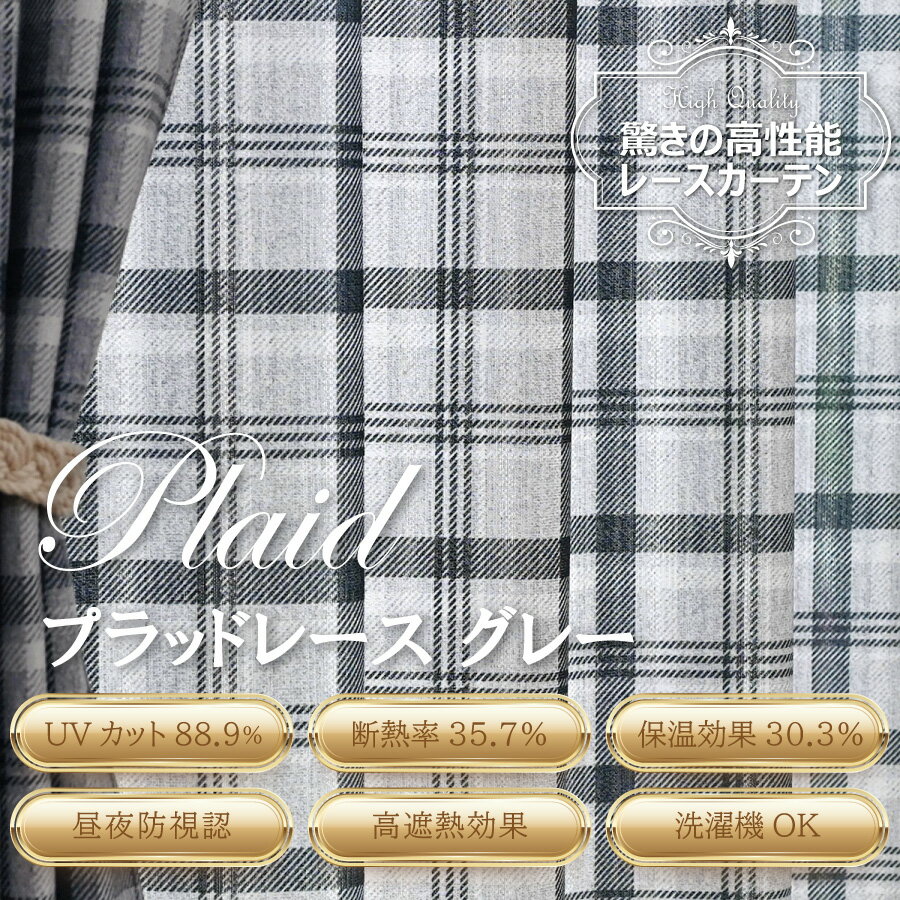 【満天カーテン プレミアム レースカーテン プラッド グレー】 レースカーテン 昼も夜も透けない プ・・・