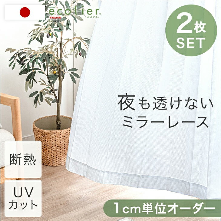 1cm単位で調節可能 オーダー レースカーテン 2枚セット 夜も透けない ミラーレース 日本製 遮像・・・
