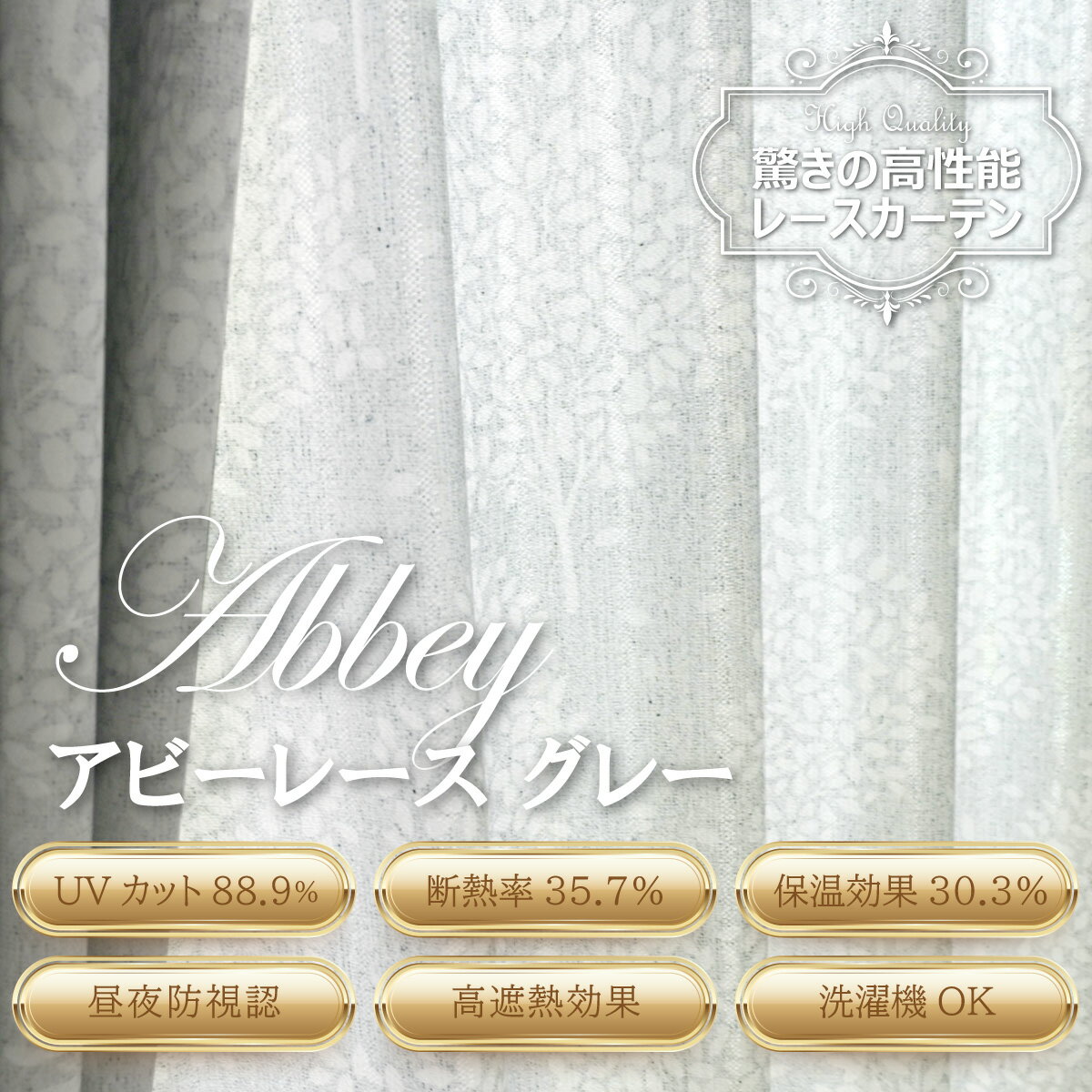 【満天カーテン プレミアム レースカーテン アビー グレー】 レースカーテン 昼も夜も透けない プラ・・・