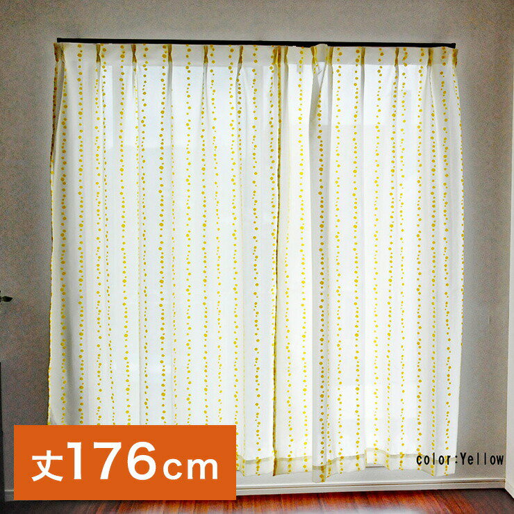 日本製 パイルミラーレースカーテン 水玉柄 2枚組 幅100cm×丈176cm 1.5倍ヒダ 2つ山・・・
