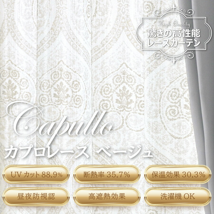 【満天カーテン プレミアム レースカーテン カプロ ベージュ】 レースカーテン 昼も夜も透けない プ・・・