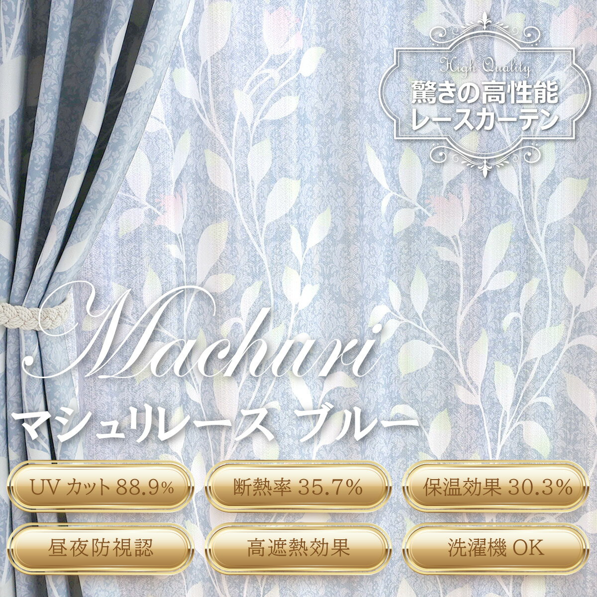 【満天カーテン プレミアム レースカーテン マシュリ ブルー】 レースカーテン 昼も夜も透けない プ・・・