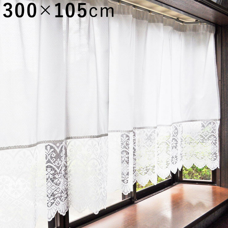 日本製 花粉キャッチ 300×105 UVカット 遮熱 断熱 遮像 裾スカラップレースが上品なスタイ・・・