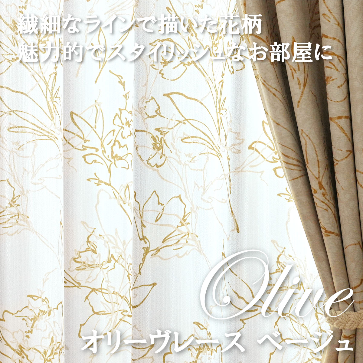 【満天カーテン プレミアム レースカーテン オリーブ ベージュ】 レースカーテン 昼も夜も透けない ・・・