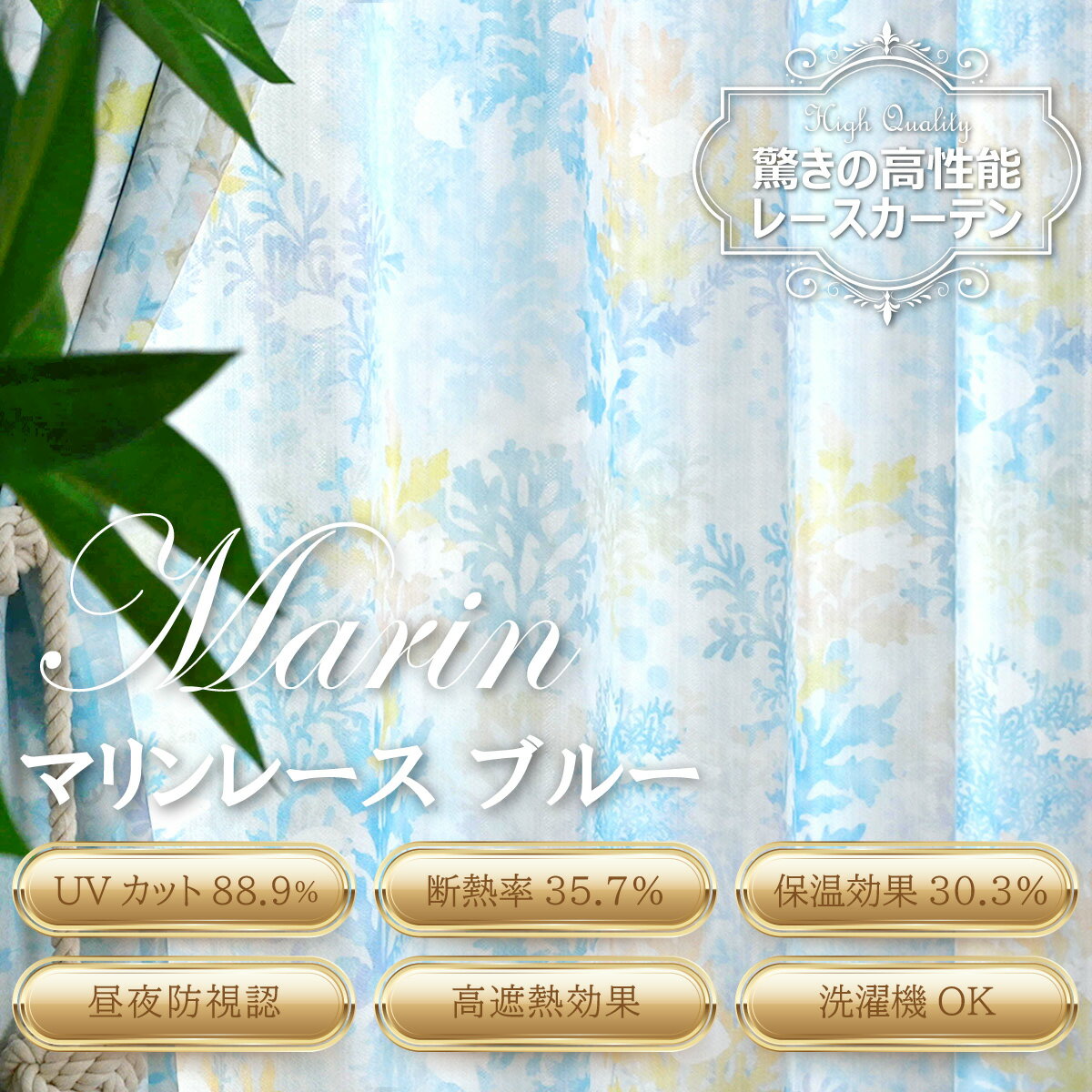 【満天カーテン プレミアム レースカーテン マリン ブルー】 レースカーテン 昼も夜も透けない プラ・・・