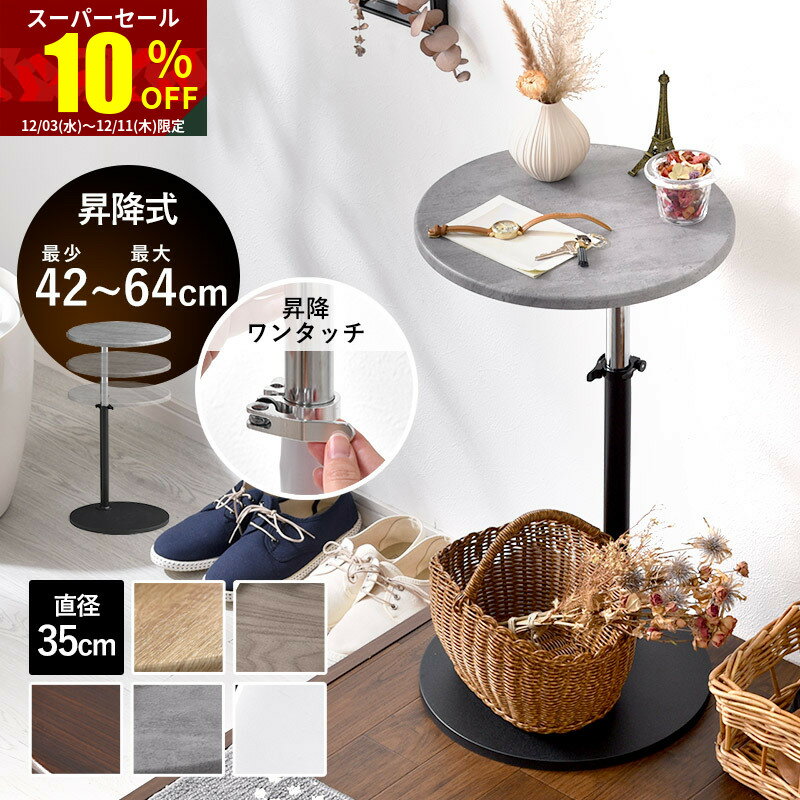 ★スーパーセール 10%OFF★サイドテーブル 昇降 丸 北欧 直径35cm 高さ42〜64cm 昇・・・