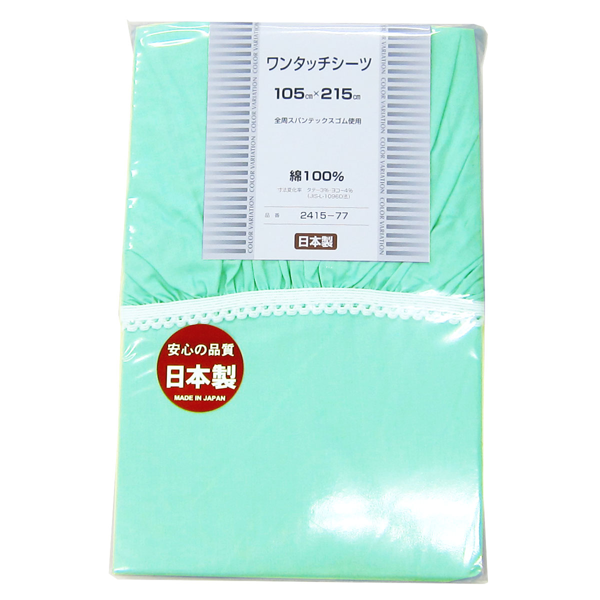 ワンタッチシーツ (和式敷きふとん用 シングルロング 105×215cm ) 綿100% グリーン ・・・