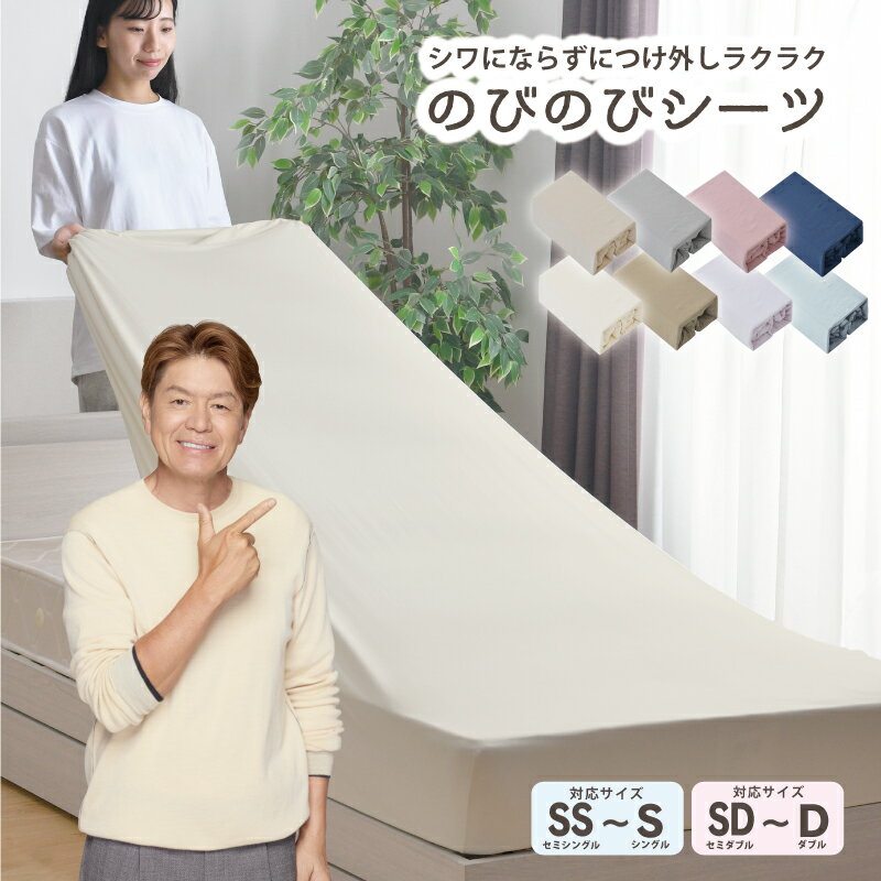 のびのび シーツ セミシングル〜シングル セミダブル〜ダブル 取付簡単 伸びる ワンタッチシーツ 時・・・