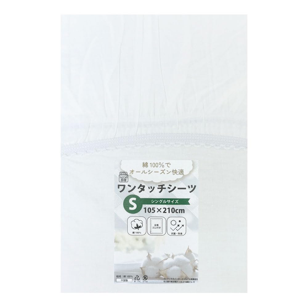 大宗 ワンタッチシーツ シングルサイズ 綿 白 [寝具] 105×215×20cm・・・