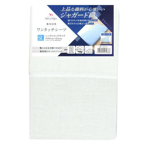 メリーナイト シーツ ワンタッチシーツ ジャガード織 ホワイト 敷布団用 シングルロング 約105×・・・