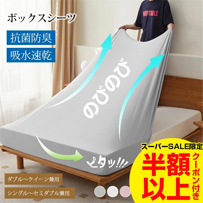 「★半額商品★」ボックスシーツ 伸びる シーツ シングル セミダブル ダブル クイーン のびのびシー・・・