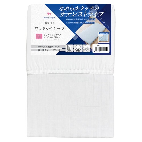 メリーナイト シーツ ワンタッチシーツ サテンストライプ ホワイト 敷布団用 ダブル 約145×21・・・