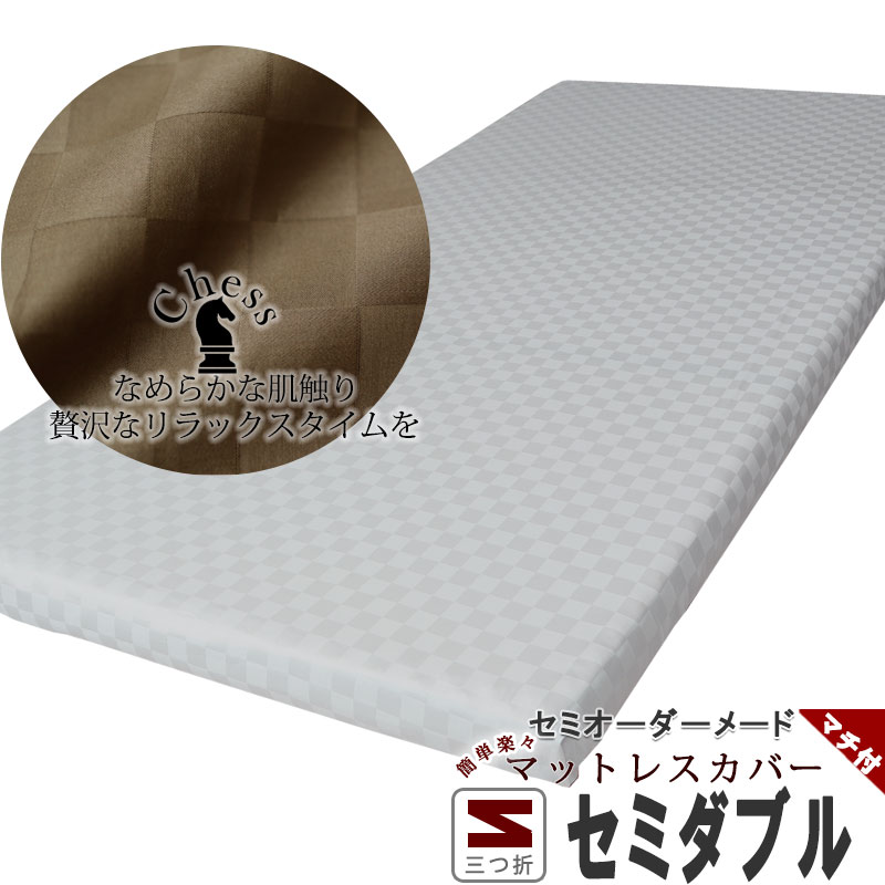 マットレスシーツ チェス コットン 三つ折り エアー 敷き布団カバー ボックスシーツ セミダブル 綿100 フィットシーツ ワンタッチシーツ 上品な光沢となめらかな肌触り 天然素材 日本製