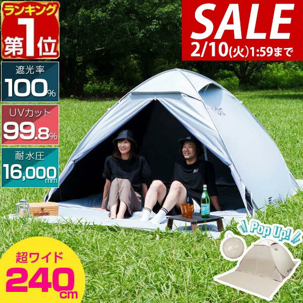 楽天1位 【累計販売16万台】 ポップアップテント 200cm 250cm 3人用 4人 5人 UV・・・