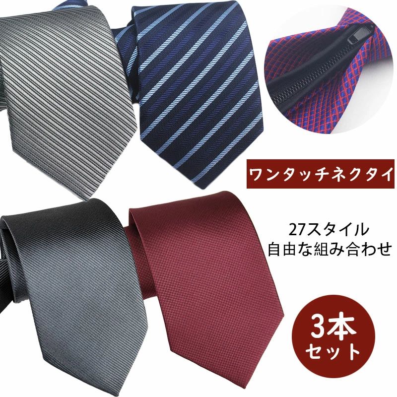 ロック付きジッパー仕様の簡単 瞬間ネクタイ 3本 セット ストライプ 無地 ワンタッチネクタイ 8 男性 大人用 結び方 結ばない