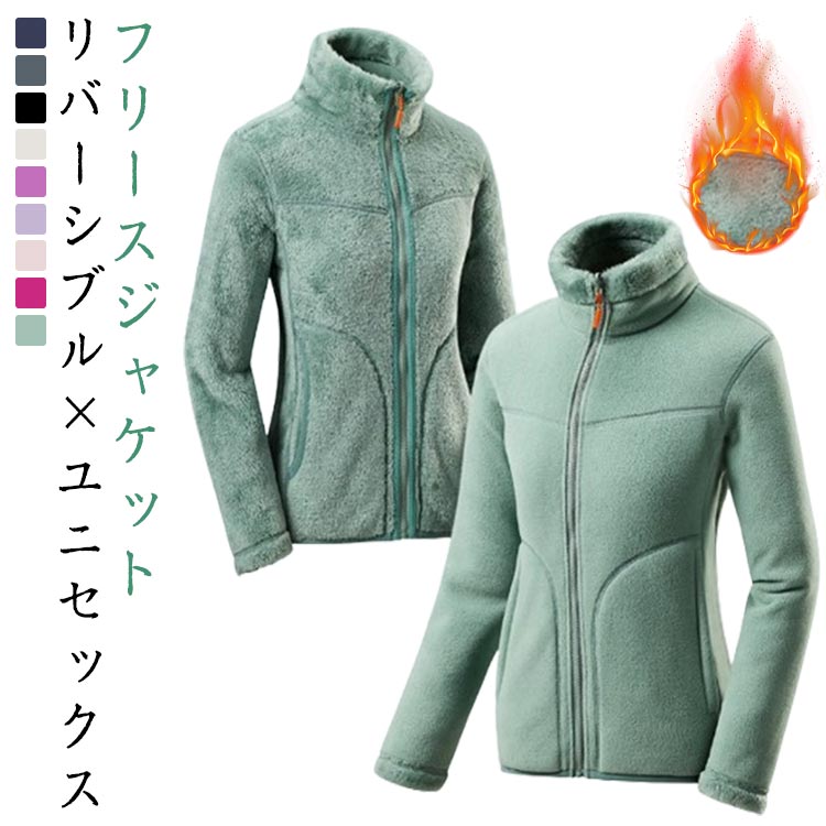 リバーシブル ジャケット ボアフリースジャケット 立ち襟 ユニセックス 秋冬 防寒 保温 フリース 暖か 厚手 大きいサイズ 登山 通勤 通学
