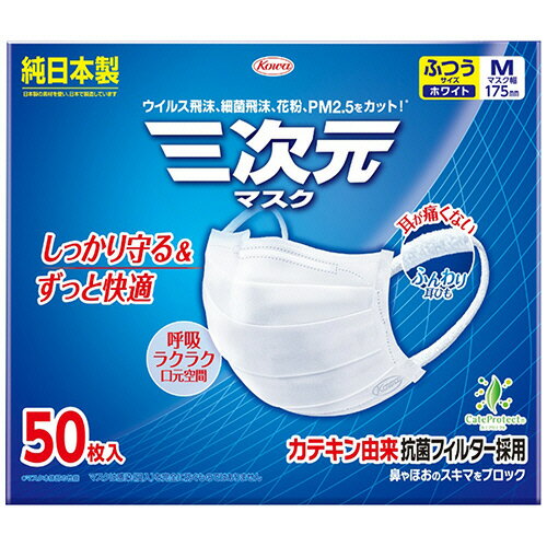 三次元マスクふつうMサイズホワイト50枚 容量50マイ 興和 マスク