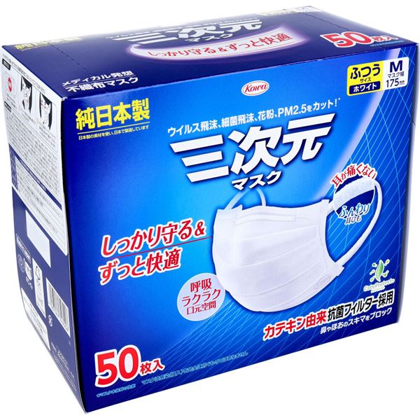 三次元マスク ふつう Mサイズ ホワイト(50枚入) マスク 純日本製 ウイルス 飛沫 花粉 PM2・・・