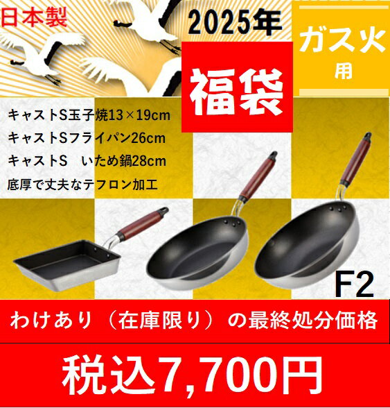 中身の見える福袋 キャストS F2セット 玉子焼13×19・フライパン26cm・いため鍋28cm ア・・・