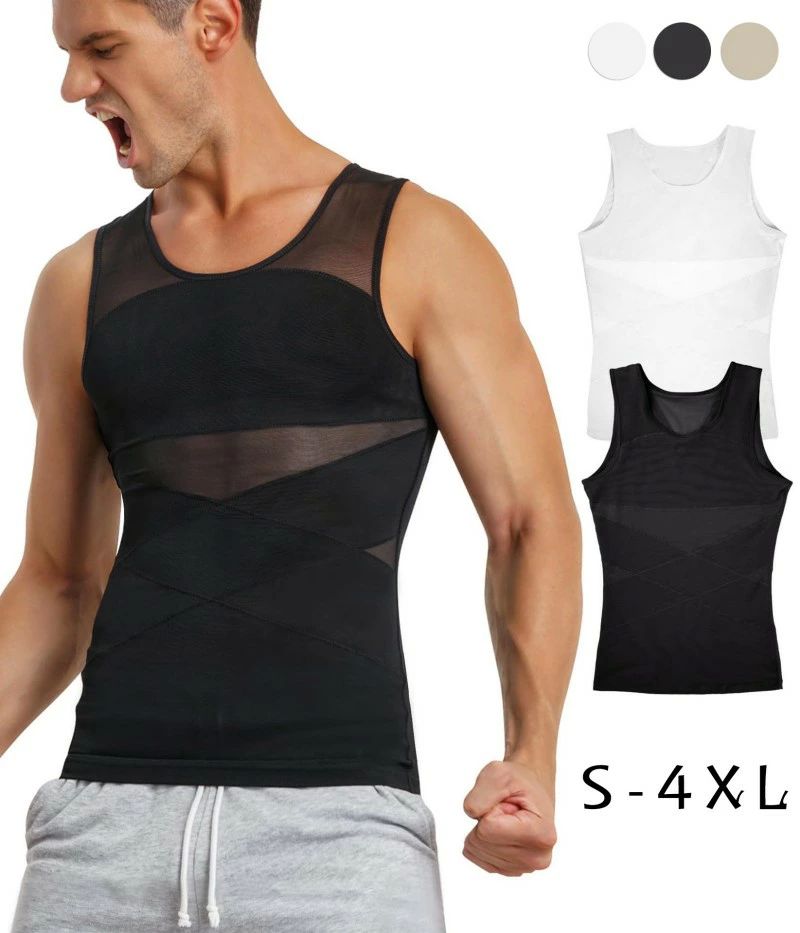 男性用加圧タンクトップで胸の垂れを防止し乳首隠し機能付き 美しいシルエットを作る収腹とスリム効果が人気