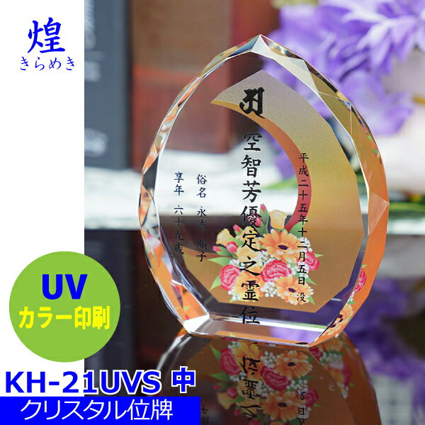 【クリスタル位牌】煌[きらめき] KH-21UVS (中) 戒名サンドブラスト彫刻背景UVカラー印刷・・・