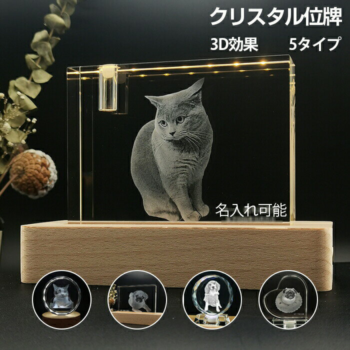 ペット用 クリスタル 位牌 メッセージ オーダーメイド オリジナル 手元供養 いつまでも 一緒 名前 年月日 遺影 供養 インテリア 文字 写真 浮かんで見える