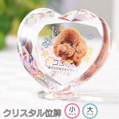 ペット位牌 仏具セット 愛しいペットちゃんのお姿をクリスタルにレーザー彫刻、またはUVカラー加工したペット用位牌です。表からはもちろん、裏からでも可愛い姿を見ることができます。