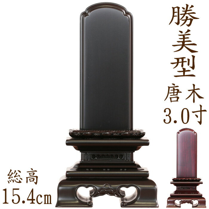 【ポイント10倍】位牌 唐木位牌 勝美型 紫檀・黒檀 3.0寸 文字彫り 戒名入れ 戒名 モダン 勝・・・