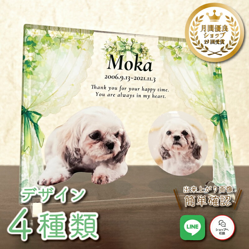 ペット フォトプレート リボンシリーズ【グリーンカーテン】 犬 猫 愛犬 愛猫 ペット メモリアル ・・・