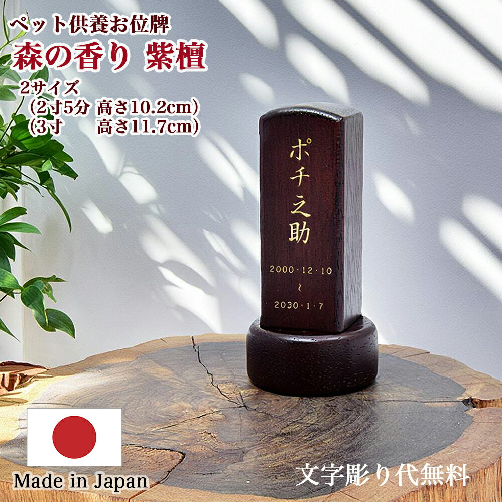 【ペット位牌】【文字彫り無料】【2サイズ(高さ10cm/11.5cm)】『森の香り 紫檀』【日本製/・・・