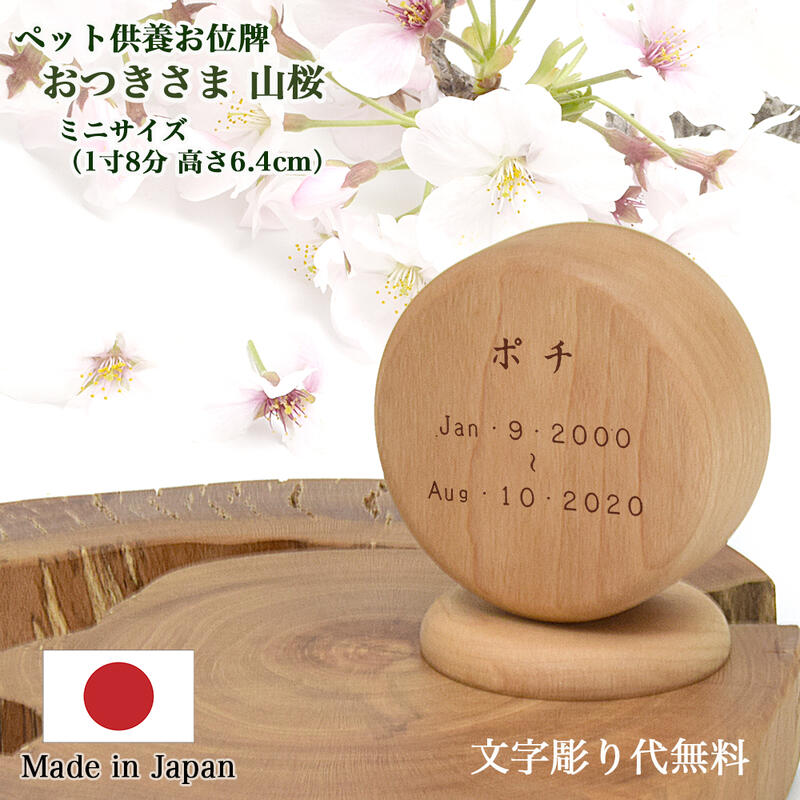 【ペット位牌】【文字彫り無料】1寸8分(総丈6.4cm)『おつきさま』山桜材/無垢材位牌【日本製/国・・・