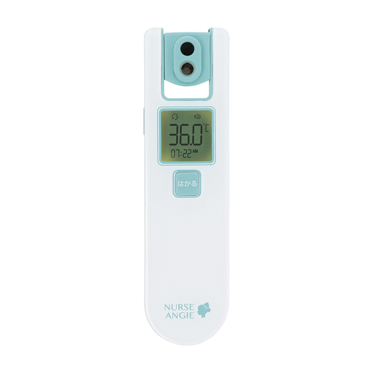 額 おでこ 非接触 「はかる」ボタンを押して適切な距離まで近づくと、自動で検温するタイプ