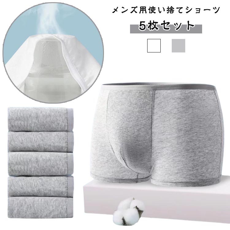 使い捨てショーツ メンズ 5枚セット 綿 使い捨てパンツ ボクサーパンツ 使い捨て下着 パンツ 下着 肌着 男性用 旅行 出張 入院 防災 お泊り 介