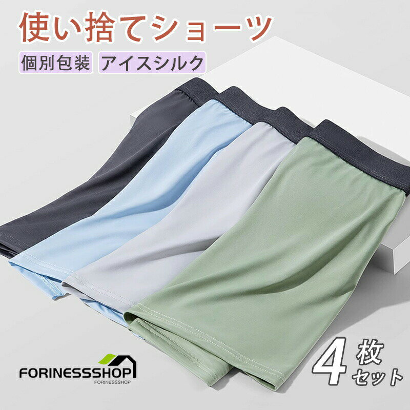 使い捨て パンツ ショーツ ブリーフ 個別包装 4枚入 アイスシルク メンズ 全4色 下着 男性用 ・・・