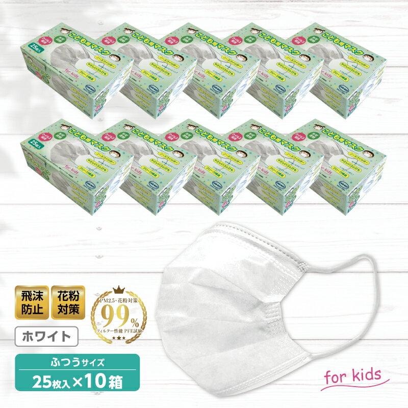 【送料無料】【1~2日以内に発送】子供用マスク 250枚入り(25入り×10箱) 使い捨てマスク 白・・・