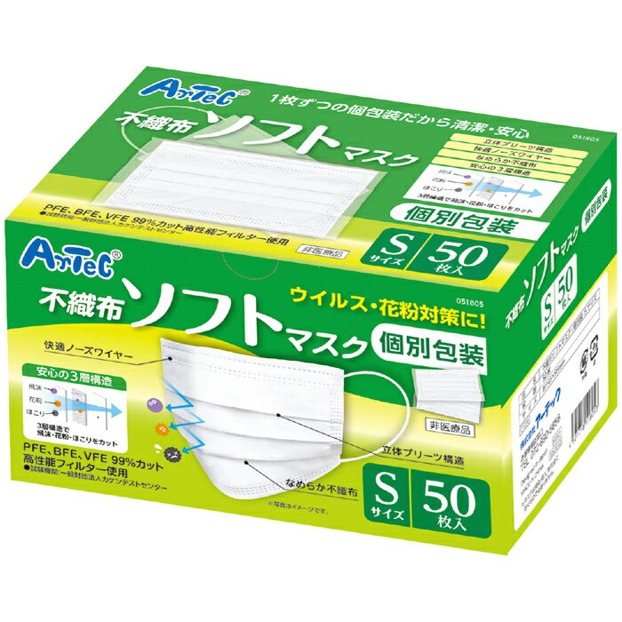 アーテック 不織布ソフトマスク(個包装)Sサイズ 50枚入 ATC-51805 不織布 ソフトマスク・・・