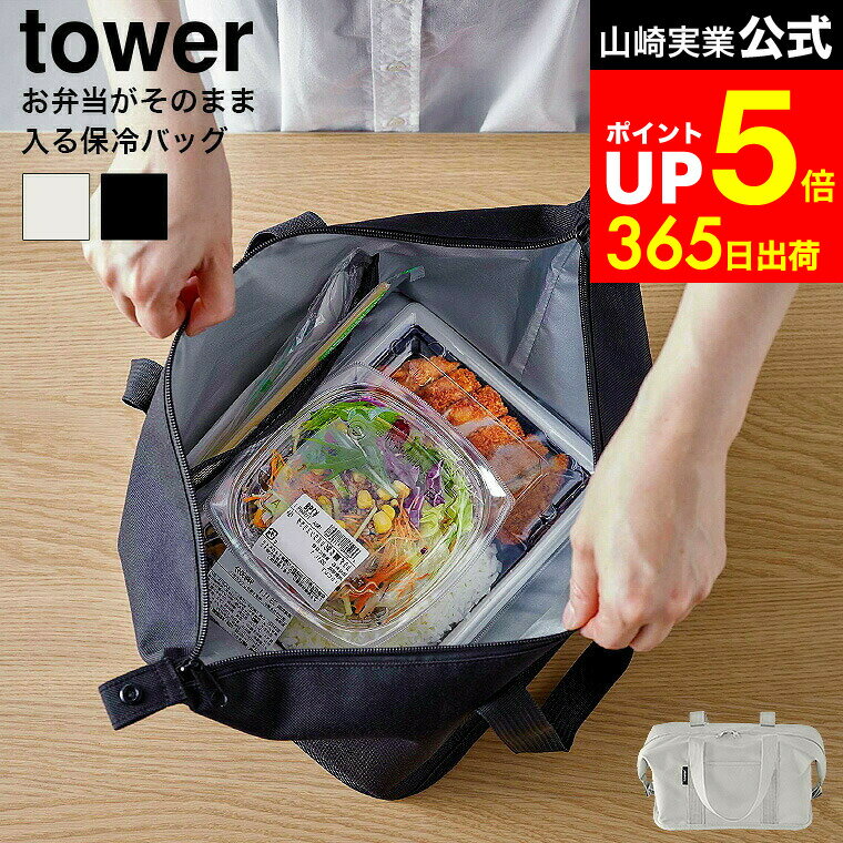 コンビニ弁当を傾けずに持ち運べる保温保冷お弁当バッグ 山崎実業 スーパー・コンビニ弁当がそのまま入る洗えるお弁当バッグ タワー 洗える保冷バッグ コンビニ弁当