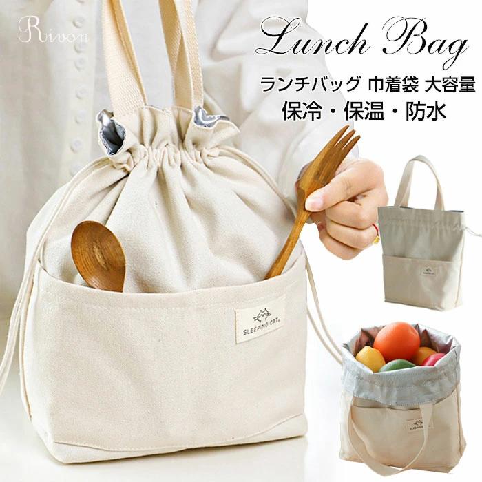 シンプルな巾着デザイン お弁当袋 大容量 保冷 保温 ランチバッ