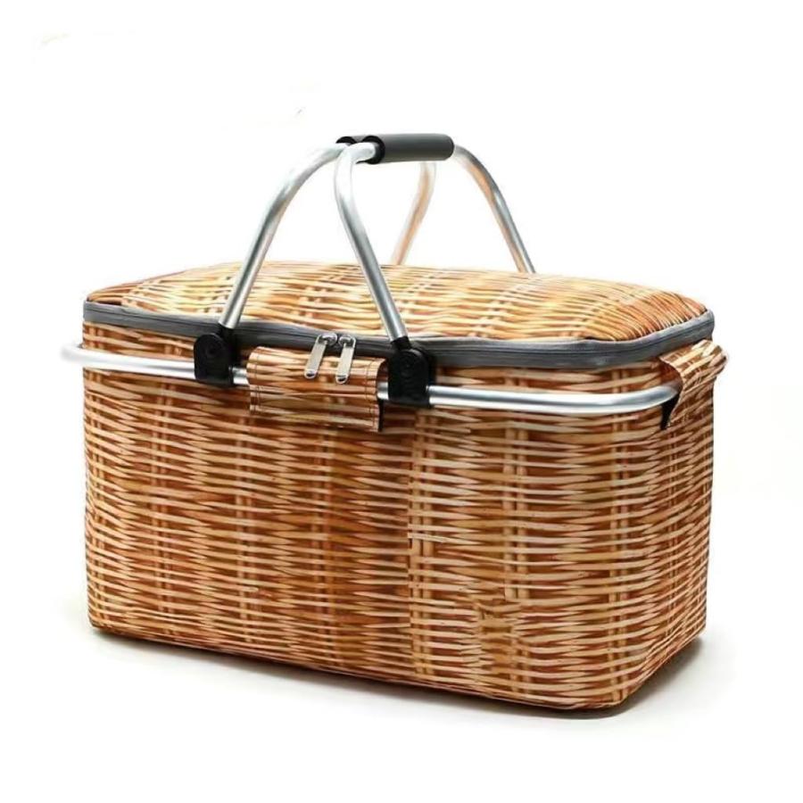 収納バスケット竹籠 野菜かご 花かご 手編みかごバスケットクーラーバッグ お買い物籠 ピクニックバスケット 折り畳み式 大容量 25L クーラーボックス 保温保冷