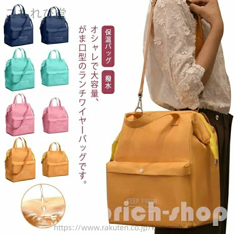 【送料無料】お弁当袋 おしゃれ ショルダーベルト付き 縦型 大容量 撥水 がま口 保温バッグ ランチ・・・