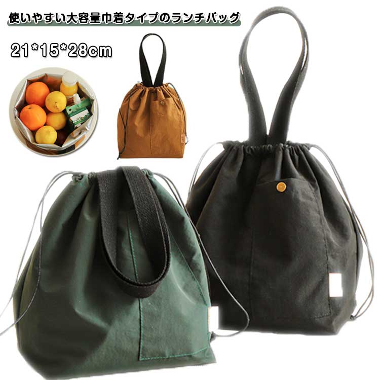 21*15*28cmお弁当袋巾着タイプ保冷保温洗える男女兼用おしゃれ