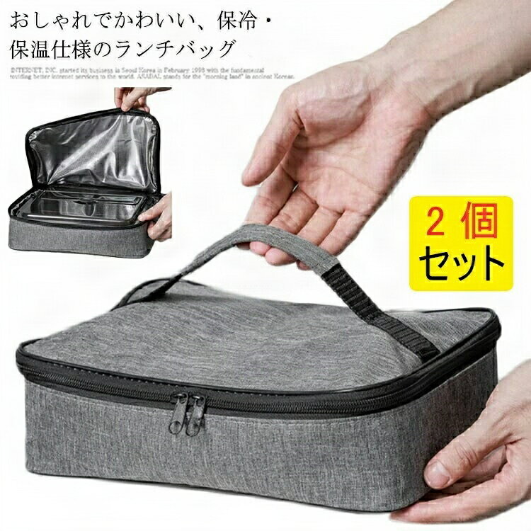 2個セット お弁当バッグ ランチバッグ 保冷 保温 スクエアトート 大きめ クーラーバッグ コンパク・・・