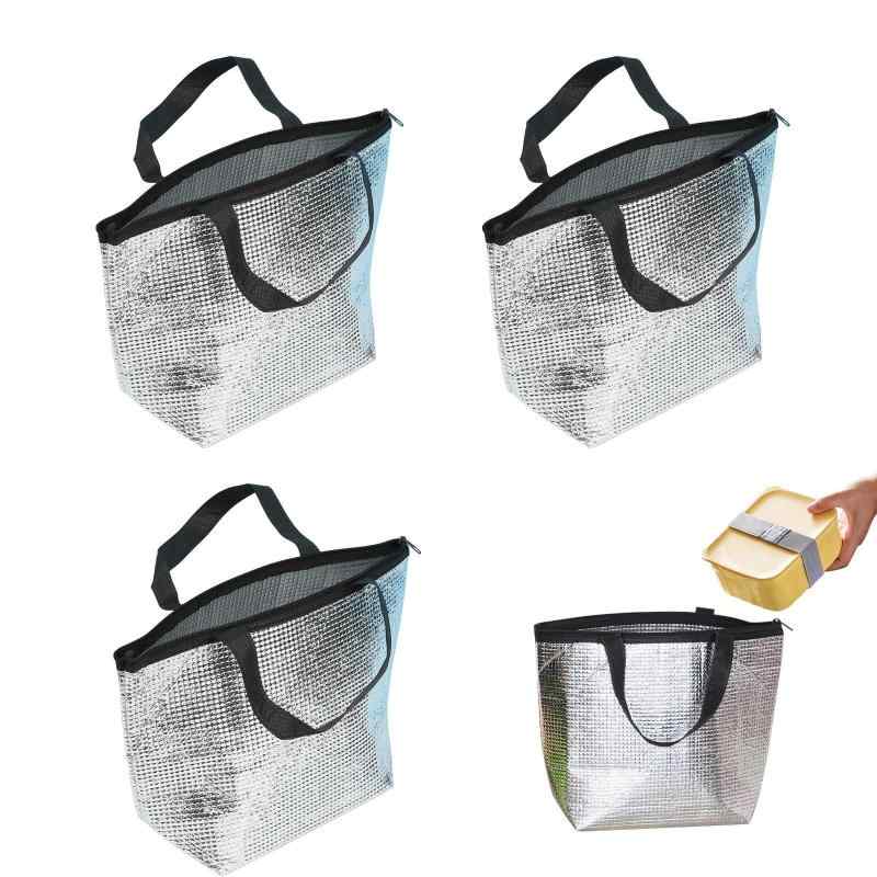 ZHEJIA 両面アルミ保冷バッグ 3個入 ランチ お弁当袋 クーラーバッグ お弁当 トート アルミ・・・