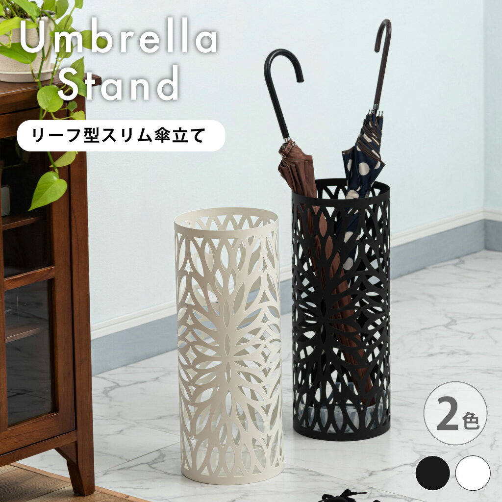 傘立て アンブレラスタンド スチール リーフ 金属 ラウンド 円柱 丸型 水受け 軽量 スリム おし・・・
