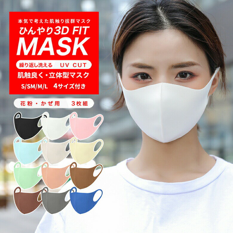 3D MASK 洗えるマスク 無地マスク 抗菌マスク 布マスク 冷感接触マスク 男女兼用 抗菌加工 調節可
