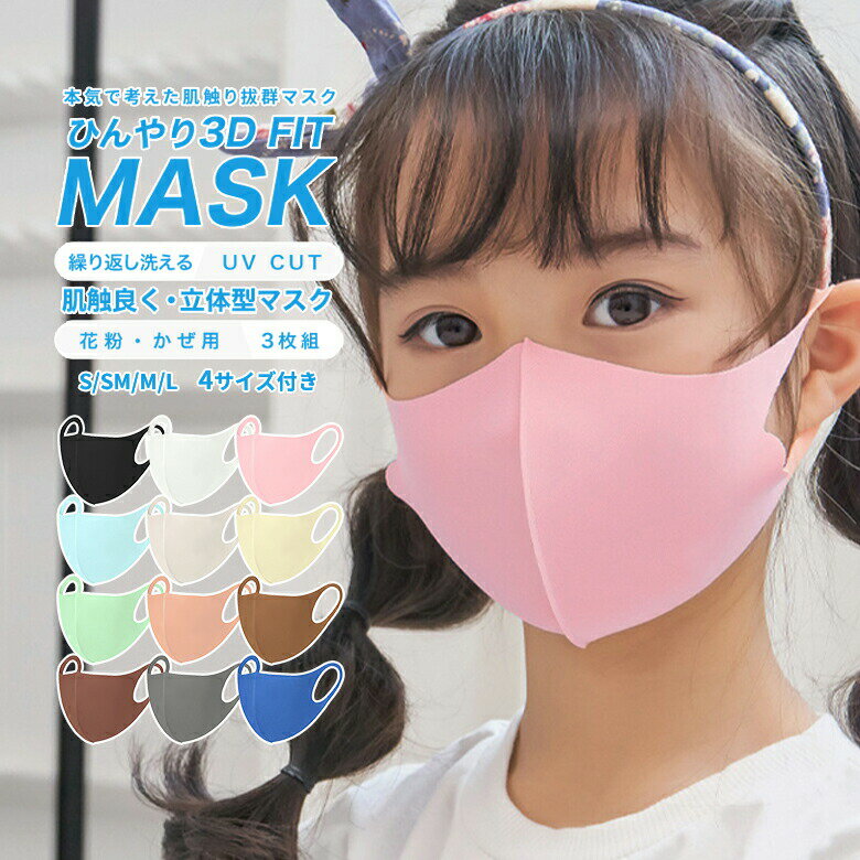 ひんやりマスク 血色マスク 立体マスク カラーマスク 冷感マスク マスク 冷感 洗えるマスク 3枚 子供マスク 洗える UVカット 接触冷感 小さめ 大きめ ウレタンマスク ホワイト 黒