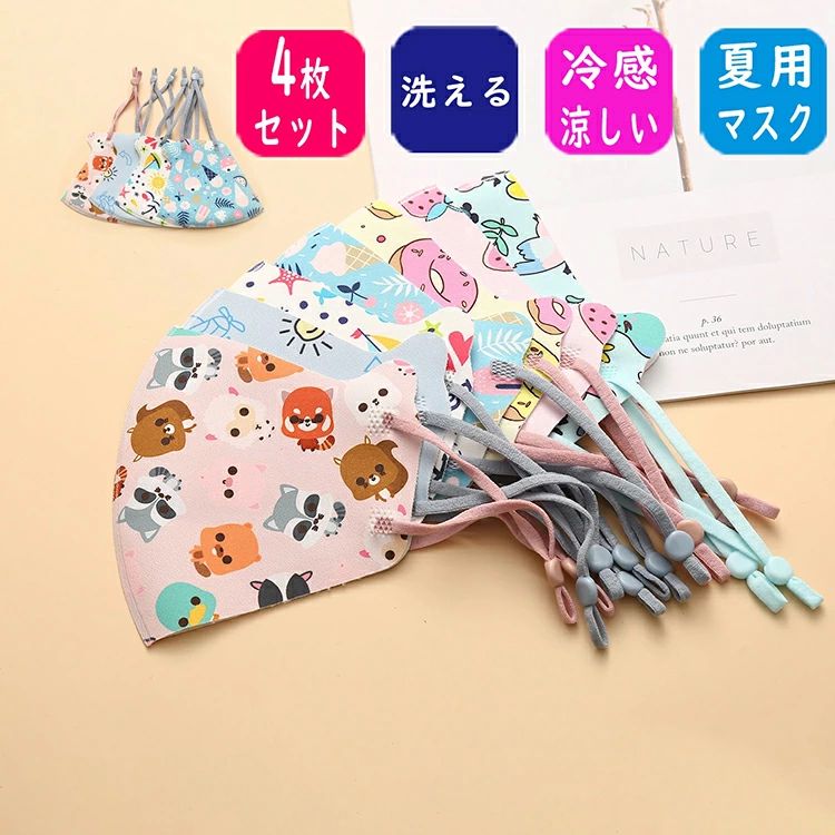 (4枚セット)S〜L新色追加接触冷感マスク涼しい冷感マスク大人洗えるマスク男女兼用マスク夏用マスクア・・・