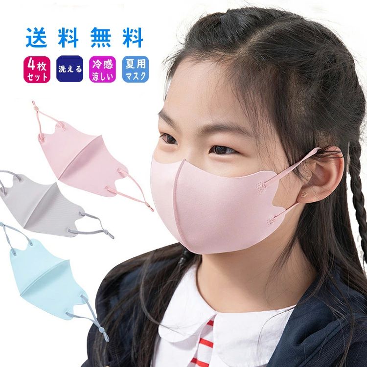 夏 用 マスク こどもキッズ用洗って使える接触冷感マスク(4枚セ